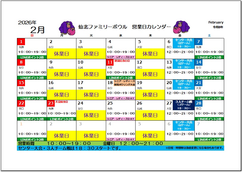 ※2月1日時点での営業予定になります。